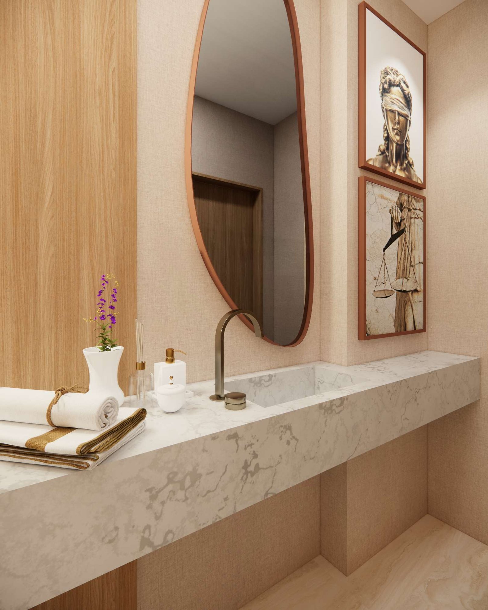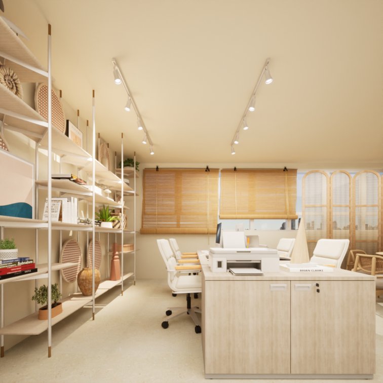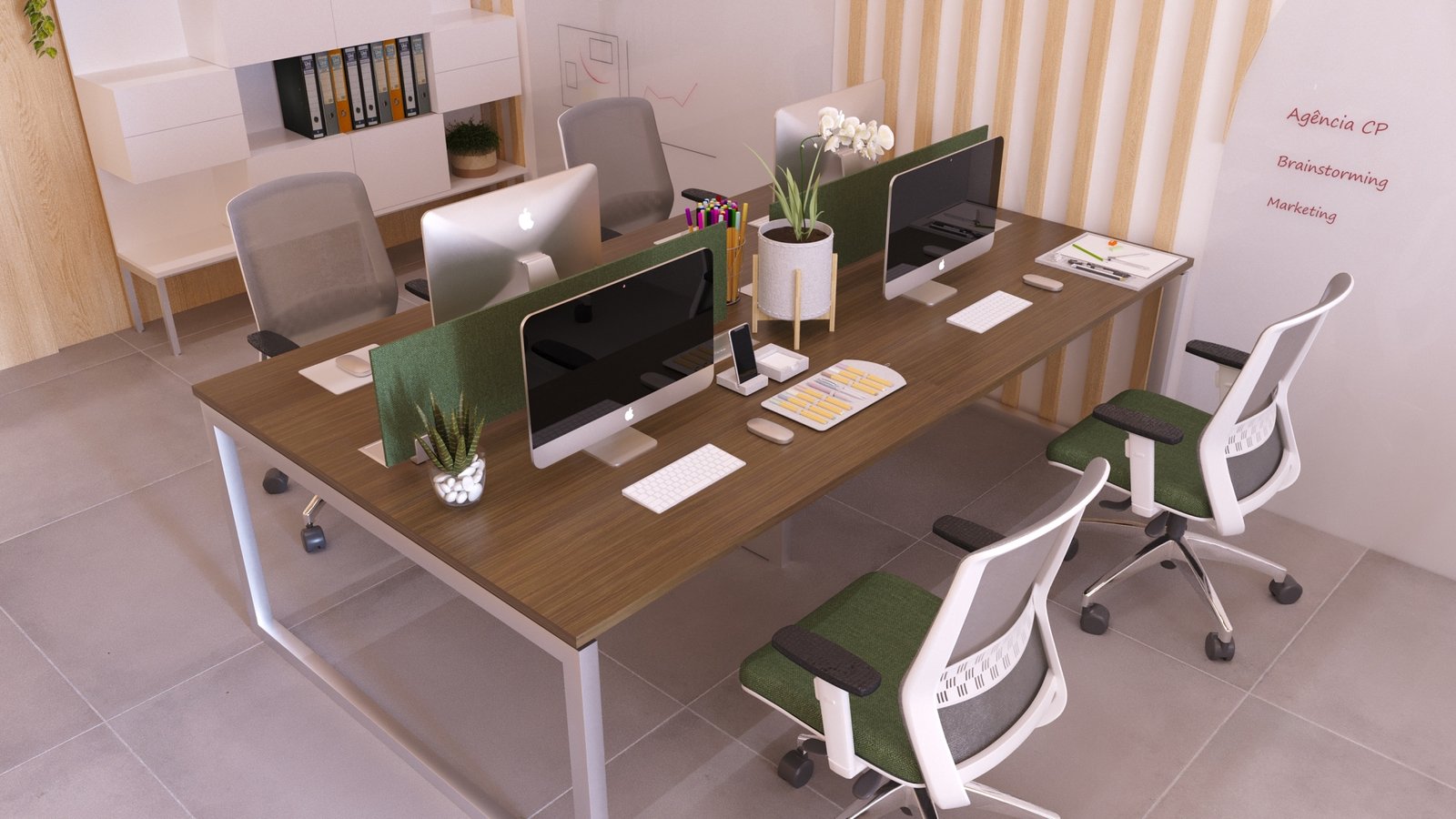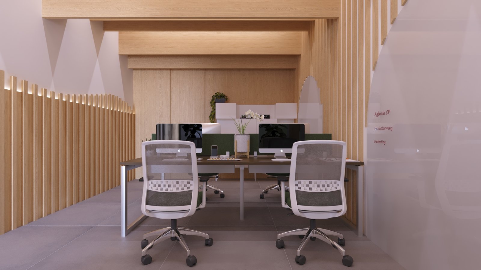 PROJETO CORPORATIVO QUE TRANSMITE A IDENTIDADE DA EMPRESA E VALORIZA O BEM-ESTAR E PRODUTIVIDADE DOS COLABORADORES. AS CORES, FORMAS E VOLUMES ESTÃO EM EQUILÍBRIO INTENCIONAL. MERGULHAMOS NA ARTE DA NEUROARQUITETURA PARA CRIAR UM AMBIENTE COLABORATIVO E QUE ESTIMULA A CRIATIVIDADE.