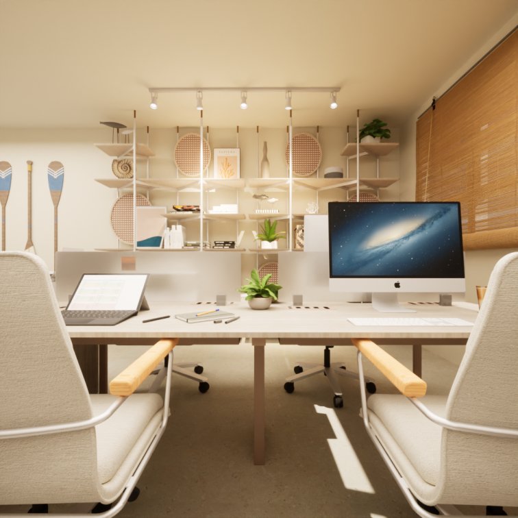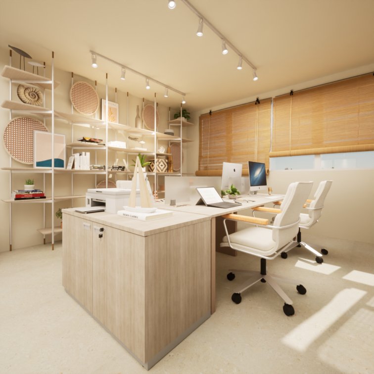CORES E TONS CLAROS MARCAM AS ESTAÇÕES DE TRABLHO QUE PODERÃO SER PERSONALIZADAS POR CADA COLABORADOR. O PRINCIPAL OBJETIVO AQUI É A FUNIONALIDADE, CONFORTO E ERGONOMIA PARA CADA USUÁRIO. A ESSÊNCIA DA PRAIA ESTÁ COMPLETAMENTE REPRESENTADA NESSE ESCRITÓRIO NOS MÍNIMOS DETALHES.